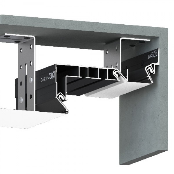 Профиль Flexy GARDINA2 02 для изготовления скрытых карнизных ниш с двумя пазами для установки штор и гардин. Для гарпунной системы крепления полотна с боковой заправкой.