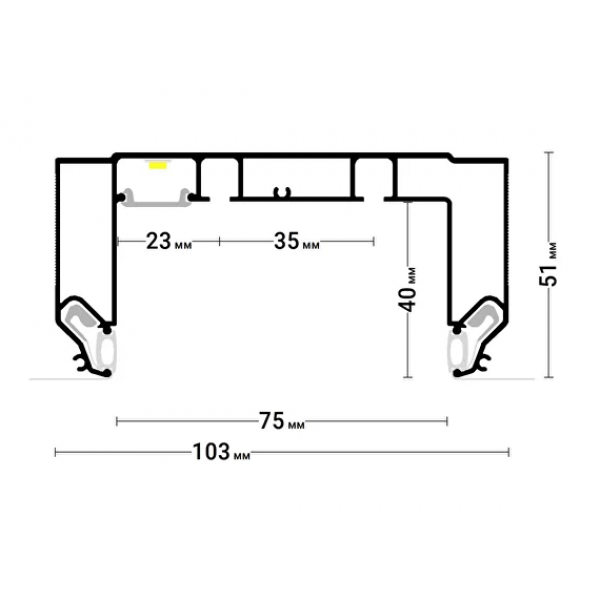 Профиль гардина ПФ 122-311 двухсторонняя двухрядная 05 3,2м  для изготовления скрытых п-образных карнизных ниш с двумя пазами для установки штор и гардин. С подсветкой. Для гарпунной системы крепления полотна.